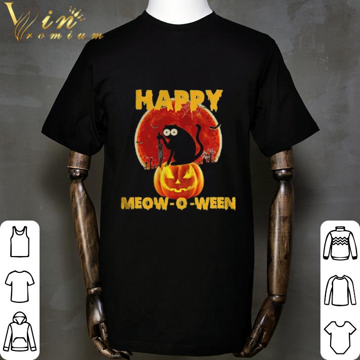 Halloween Black Cat Hold Knife Happy Meow o ween shirt