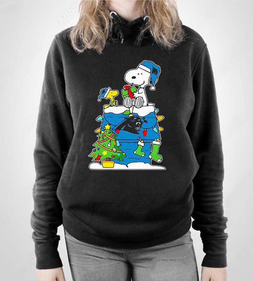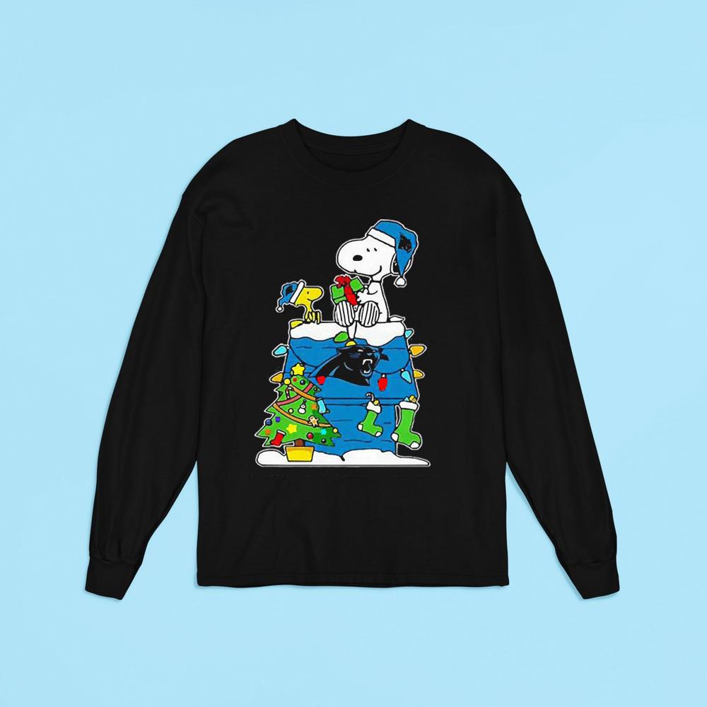 NFL Carolina Panthers Snoopy And Woodstock Christmas Shirt